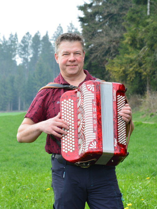 Hobbys: | Volksmusik und Jodelgesang, Berner Jagd, Schwingen, Eishockey. Leitet die Thuner Schwyzerörgelifründe und begleitet das Jodelduett Trudi Kropf & Markus Geissbühler am Örgeli | ||
